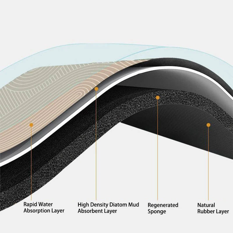 - Ultra-schnelle Feuchtigkeitsaufnahme: Die Diatom-Mud-Oberfläche saugt Wasser sofort auf und sorgt für trockene Böden in Sekundenschnelle.
