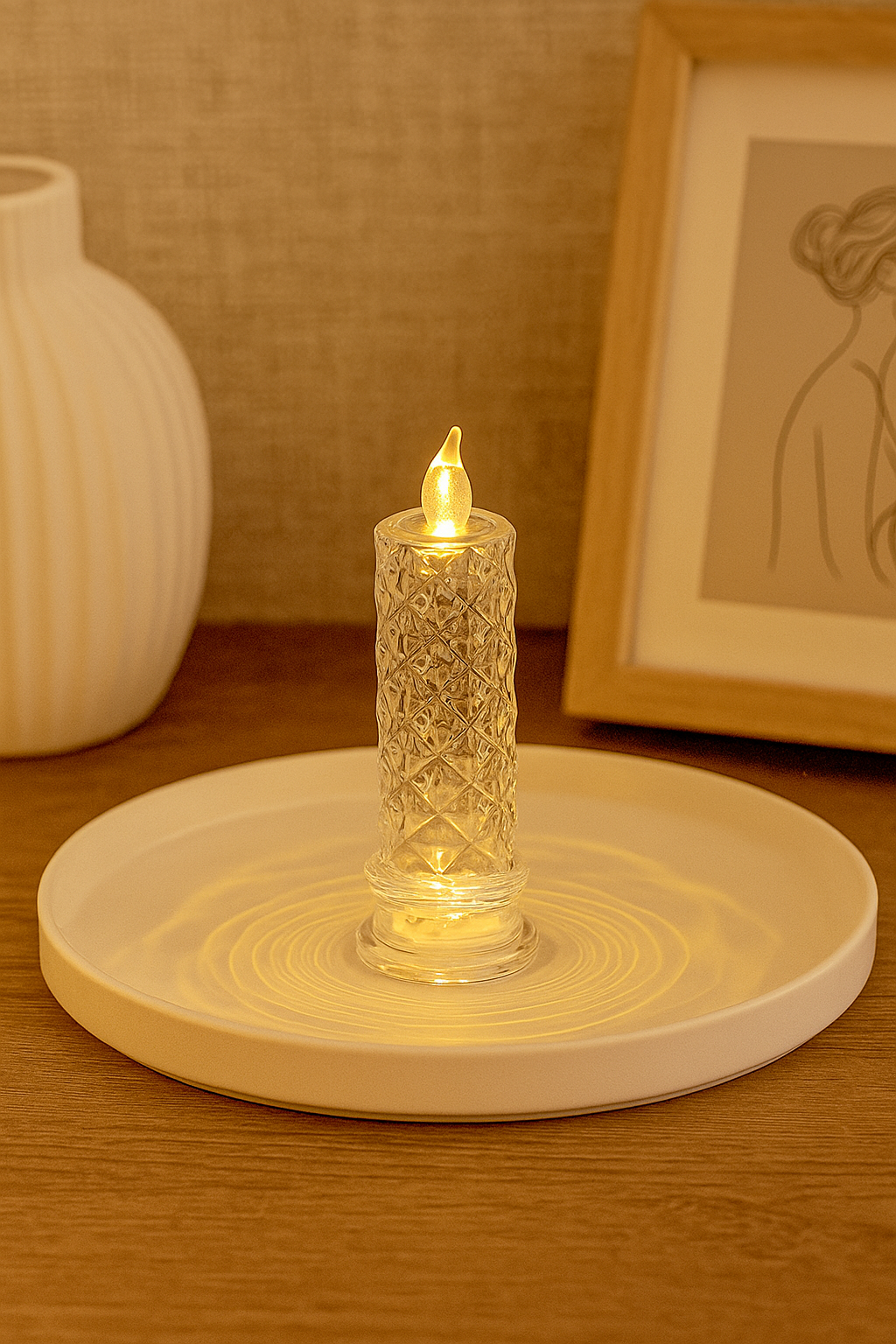 Ein Knopfdruck genügt, um den Raum in ein warmes, goldenes Licht zu tauchen. Platzieren Sie das Aurora Kerzenlicht auf dem Esstisch für ein romantisches Dinner oder auf dem Nachttisch für eine gemütliche, elegante Atmosphäre. Dank des batteriebetriebenen Designs genießen Sie stimmungsvolle Beleuchtung jederzeit und überall – ganz ohne Aufwand.