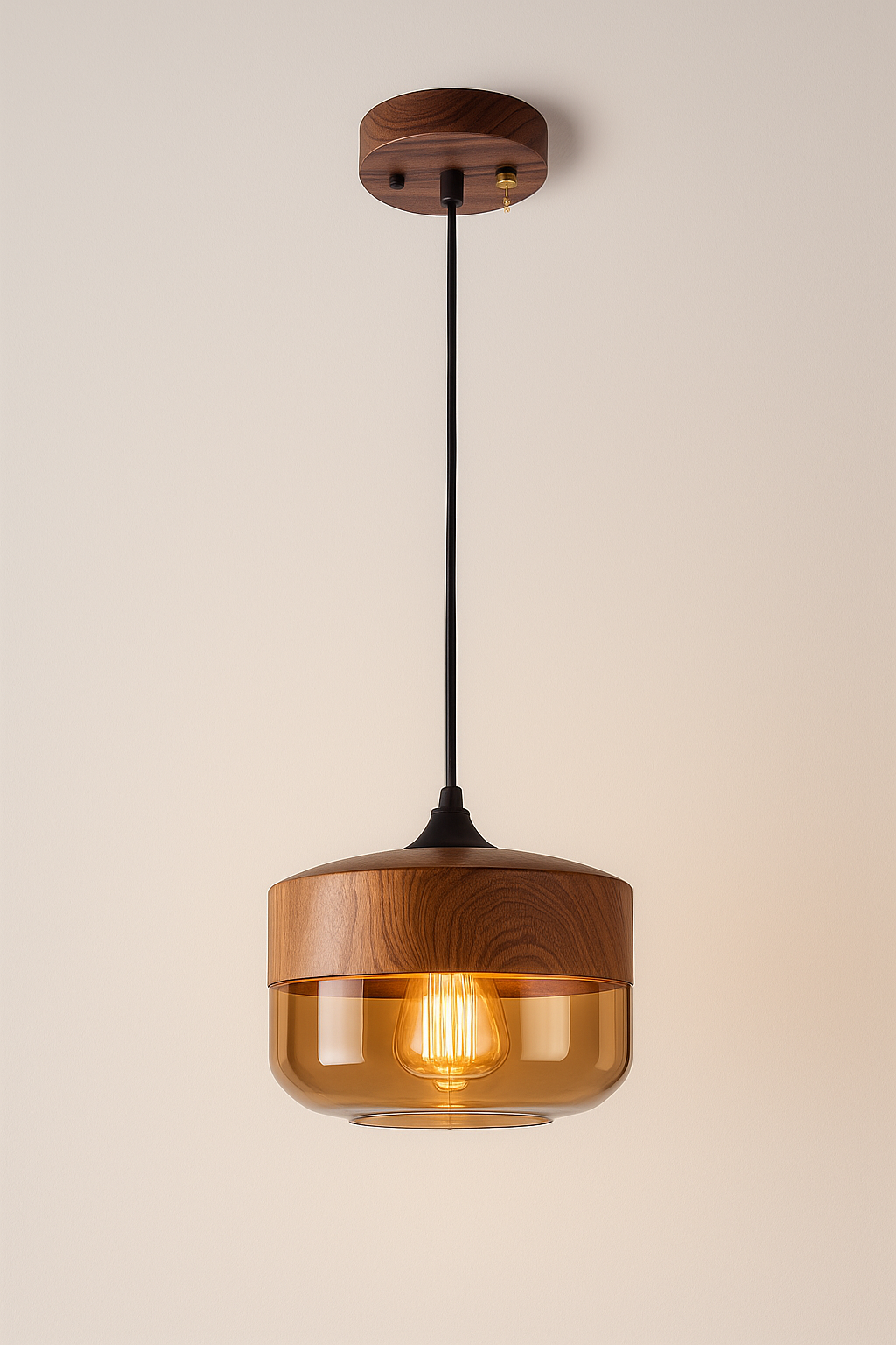 North | Nordic Glow Holz-Glas Pendelleuchte