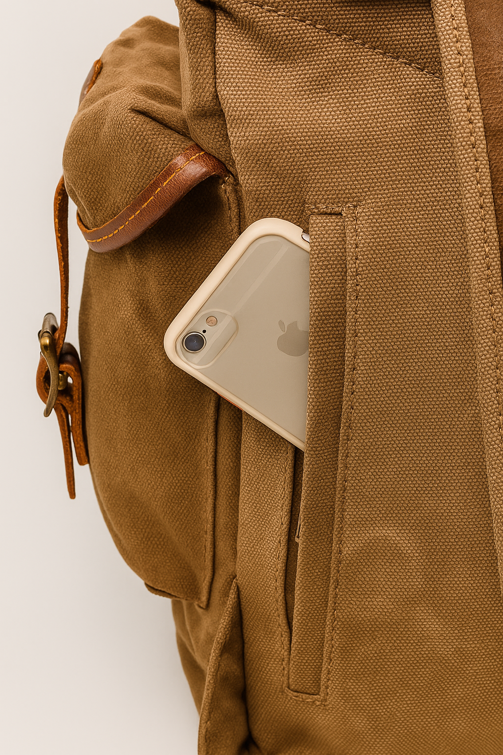 Robust & Wetterfest – Hochwertiges, gewachstes Baumwoll-Canvas und Vollnarbenleder schützen deine Ausrüstung vor Wind und Wetter.