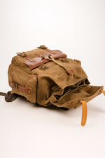 Erlebe zeitlose Eleganz mit dem RetroPack, einem Rucksack im Retro-Stil, der Funktionalität mit klassischem Design verbindet. Gefertigt aus gewachstem Canvas und echtem Crazy Horse Leder, ist dieser Rucksack nicht nur wetterfest, sondern auch besonders langlebig. Egal, ob für den täglichen Gebrauch, Wochenendausflüge oder große Abenteuer – der RetroPack begleitet dich überall stilvoll und zuverlässig.