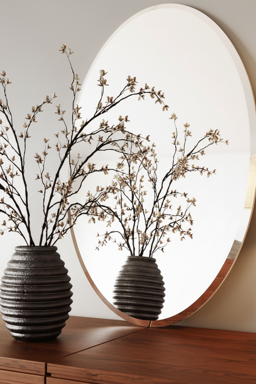Platziere den Lunaris über dem Waschbecken für ein helleres, großzügigeres Ambiente im Badezimmer, oder verwende ihn im Schlafzimmer über einer Kommode, um Licht harmonisch zu reflektieren und den Raum optisch zu öffnen. Auch im Eingangsbereich setzt er einen eleganten Akzent und sorgt gleichzeitig für einen schnellen Last-Look, bevor du das Haus verlässt.