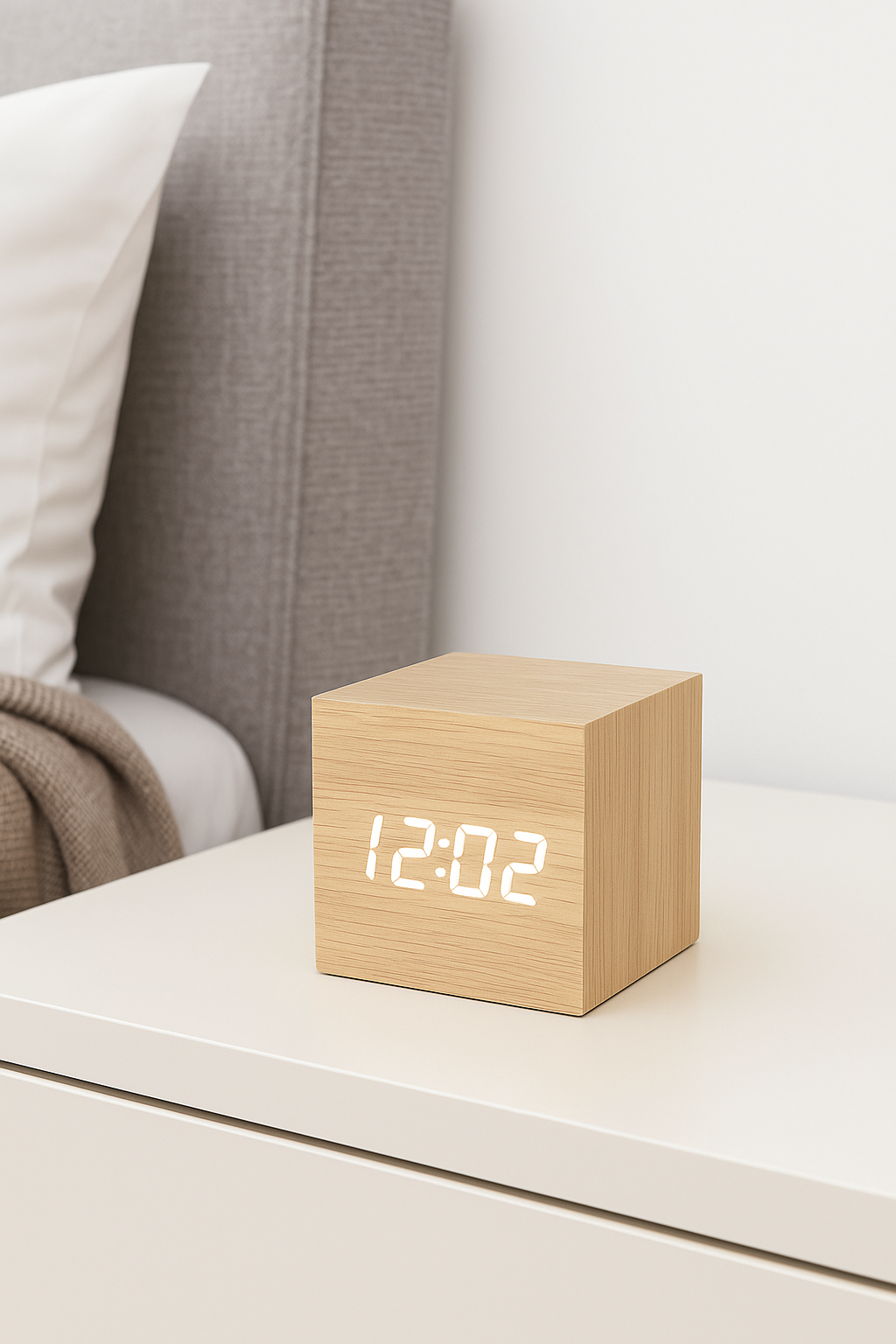 Der Nordic Sound Control Holz LED Wecker vereint modernes Design mit innovativer Funktionalität. Ausgestattet mit einer Sound-Control-LED-Anzeige kannst du die Uhrzeit durch einfachen Klatschen steuern, ohne einen Knopf zu drücken. Der Wecker hat ein elegantes Holzgehäuse, das deinem Raum eine warme, natürliche Atmosphäre verleiht. Dank der klaren LED-Anzeige ist die Uhrzeit auch bei Nacht perfekt ablesbar.
